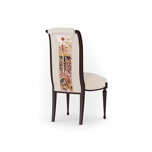 A part of our Jungle collection,this chair is designed in art deco style, withebony macassar and silver plated details.Upholstered in leather,it has back inlayrd with precious woods.
