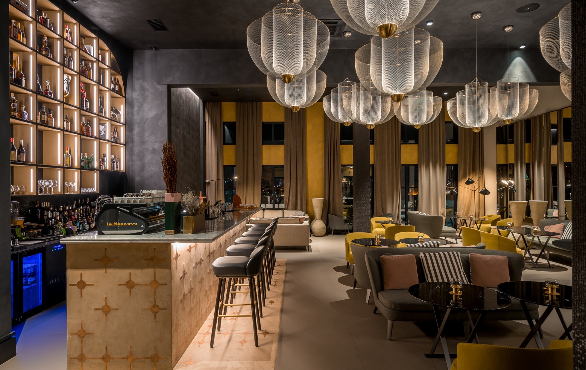 Gaudio is a reality that focuses on quality and strength of Made in Italy. Strong of a more than centenarian tradition that starts in Molfetta, in the territory of Bari, the brand is opening more and more often to international design experiences. Among these we are pleased to report the realization – in collaboration with Motif and Proact.e – of custom-made furniture for the Sominee Restaurant inside the Monograph Hotel & Lounge in Tbilisi, the capital of Georgia. For the restaurant, which bets on soft lighting and a look that reinterprets the refined spaces of the 50s, Gaudio has produced the bookcase with dj console, characterized by a structure in black grey lacquered wood and elements in painted metal with brass finish. In addition, he made the custom-made cabinet with brass-finish painted metal structure, embellished by the covering of the doors and shelves in white Carrara marble.