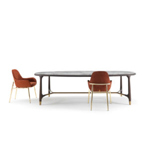 American walnut structure, metal frame under top in satin brass, invisible grey marble top.