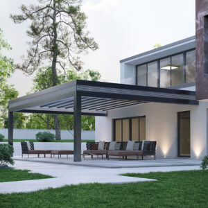 Aluminum pergolas are elegant solutions of style and functionality, designed and manufactured to create oases of shade outside the home. BT Group has designed a special collection of pergolas specially created with the different needs to be met in mind. Structures that fit perfectly into different architectural contexts and that manage, with naturalness and simplicity, to enrich the outdoors with measured sophistication. There are different types of pergolas that differ according to the type of structure, or the material used in their construction. Aluminum and wood are the main materials used in the construction of these minimal and linear works. Valuable materials, processed to ensure effective resistance to time and different weather conditions.