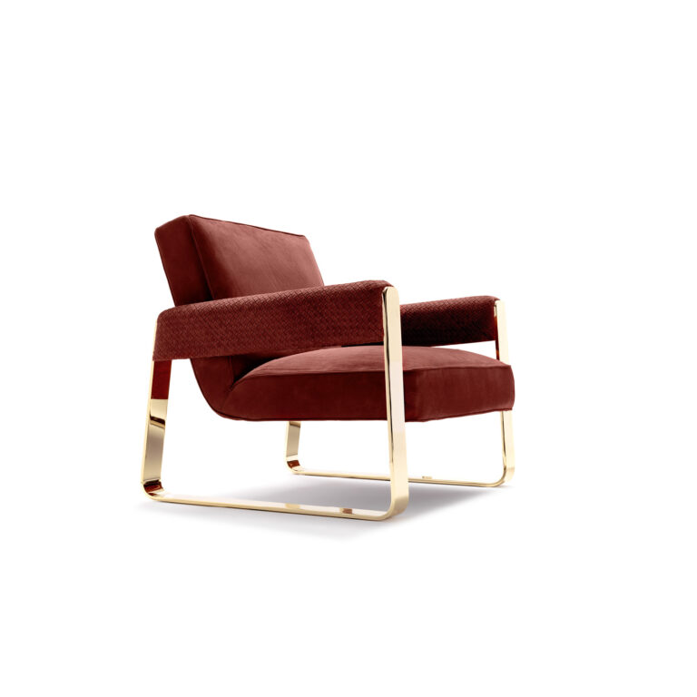 PATRICIA Armchairs & Poufs 72x85x74h Grassè mattone leather, metal base, finish bright gold. Read All 72x85x74h Grassè mattone leather, metal base, finish bright gold.