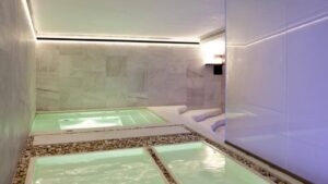 With a breathtaking view over the sea, the last floor is entirely devoted to the beauty SPA and includes waiting lounge, beauty treatments, private suites, Kneipp path, sauna, steam bath, emotional showers, relaxation rooms, cold water tub and saltwater pool.